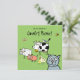 Recycled, but you can choose your own type of paper. Choose your own background colour and type of gathering (shower, dance, ball, party, brunch, lunch, tea, dinner, picnic, race, etc). Add your own text on the back, along with the location and the phone number. Matching party favours and keepsakes for the participants, along with a bumper sticker you can use as a small banner. Each invitation comes with a matching envelope. There are 9 animals in the Funky Farm! Look for them!