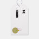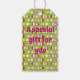 A bright and cheerful gift tag with a special message over a pattern of neon gnomes. Perfect to finish your gift wrapping up in style.