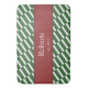 Add a touch of unique funky design to your home bathroom decor with this custom family name bath mat. This modern bath mat has a background pattern of green and white stripes and a red area for your family last name and the date your family was established (or text of your choice).