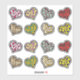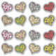 A sheet of funky hearts in vivid colours and a leopard spots pattern