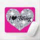 Funky Hot Pink Faux Diamond I Love Bling Heart Mouse Pad