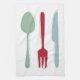 This retro kitchen towel, with it's kitchen utensils (fork, knife and spoon) in a combination of red, blue, and green will look fabulous hanging from your oven door.