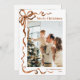 Funky Merry Christmas Boho Bow Ribbon 2 Photo Holiday Card