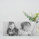 This modern holiday photo card features white calligraphy script over a full-bleed photo. This design accommodates a single, horizontal  photo on the front of the card. On the reverse side you will find a festive red and white diagonal stripe pattern which can be removed or changed. You can also add another photo or text to the back by selecting the "customize further" option.