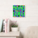 Funky Neon Colours Retro Modern Pattern Square Wall Clock
