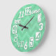 Numbra wall clocks with funky assorted fonts. Mint Green Chevron and White number indicators. Great for college dorm rooms.