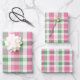 Funky pink and green plaid tartan patterned wrapping paper. Pretty chequered design. Cottage Shabby Chic Style.