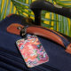 Pleasantly surprised at the quality of the luggage tag. It was exactly as shown and my daughter will be pleased. The address label on the back of the luggage tag was neat and clear.