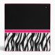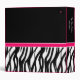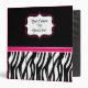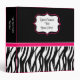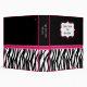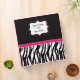 Cute black, hot pink, white zebra print binder features fun stripe pattern on front and back with scroll frame on front. Add your custom text to the front and spine.