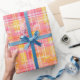 Funky Preppy Orange and Pink Plaid Wrapping Paper