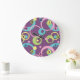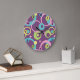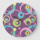 A vibrant purple background is adorned with a funky pattern of circles, dots, and rings in a variety of bright colours, including pink, green, blue, and yellow.