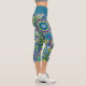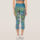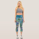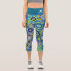 Funky Retro Floral Pattern with Name - teal blue Capri Leggings