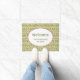 Easily personalize the text on this welcome mat. The design features a retro style pattern in olive green with bead-like oblong shapes set at intervals along straight vertical lines. Each colour may be edited in this special graphic for a custom look.
