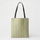 This versatile tote bag features a retro style pattern in olive green with bead-like oblong shapes set at intervals along straight vertical lines. All colours on either side may be edited in this special graphic for a custom look.