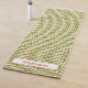 This yoga mat features a retro style pattern on each side in olive green with shapes like beads set at intervals along straight vertical lines. Every colour on both sides may be edited in this special graphic for a custom look.
