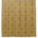 A fun shower curtain design with a repeating pattern featuring a yellow and brown geometric design with a diamond pattern decorative border.