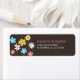 Funky flower themed return address labels. Design features an assortment of spring flowers in orange, blue, white, pink and yellow against a dark brown background. Personalize with your own name and address. Copyright © Lisa Marie Robinson All rights reserved. It is illegal to use or duplicate this, or any of our images, without written permission.