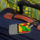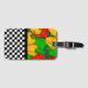 Fun and funky luggage tag feature tri coloured bell peppers with black and white chequerboard pattern