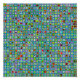 This product is made from a mostly turquoise textured mosaic square tiles pattern with bits of bright red and green dispersed throughout in a random arrangement.  The many colourful concentric circles in this unique abstract design give it a funky, retro look.