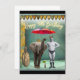 Fun and funky altered art 50th birthday vignette features vintage strongman and a parasol carrying elephant photo cutouts with neon text