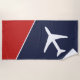 Funky And Stylish White Plane / Airplane / Planes Aviation Pilot Flying Beach Towel to add to your collection. Red, white and blue background. A cool present / gift idea for all who love custom design personalized unique items, positive vibes, aviation, flying, sky, planes, airplanes, pilots, air transport theme etc. Baby shower, birthday etc. Boy, girl, fly, aircraft, wings, captain, jet, aeronautics, aerospace, meteorology, airborne, airline, airlines, airways, airport, circle.