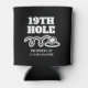Funny 19th hole golf humour gift beverage beer Can Cooler. Personalized beverage holder with name and funny quote. Add your own text to the template. Fun golf ball and putting hole design for Birthday party, BBQ, dinner party, etc. Double sided print. Humourous golfer gifts for dad, husband, sports coach, grandpa, father, boss, co worker, buddy, instructor etc.