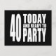 Funny 40th Birthdays : 40 Today and Ready to Party Postcard
