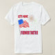 Funny 4th of July T-shirts to grab a few Independence Day giggles and grins featuring an American flag, fireworks and the phrase of, Let's Make Fireworks Together.