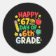 Funny 67th Day Of 6th Grade Teacher Student Six Se Classic Round Sticker