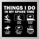 Funny 6 things I do in my spare time tees for women, men and kids. Humourous surfing apparel featuring a cute design for surfer and water sport lover dad, mom, brother, son, sister, daughter, friend, coworker, uncle, aunt.. Funny outfit for those who love to go surfing, watch and research surfing, talk think and dream about surfing sport. It makes a great matching tees for enthusiast surfer who love water sports.