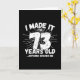 This funny 73rd birthday design makes a great sarcastic humour joke or novelty gag gift for a 73 year old birthday theme or surprise 73rd birthday party! Features "I Made it to 73 Years Old...Nothing Scares Me" funny 73rd birthday meme that will get lots of laughs from family, friends, party guests & the birthday guy or girl too!