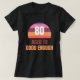 This fun 80th birthday t-shirt features a big "80" in the center of a colorful sunset as the focal point. Below are the words, "AGED TO GOOD ENOUGH." This design appears on a black t-shirt but you can select other colors. This is a funny shirt that she will love wearing because of all the fun colors. Copyright Kathy Henis