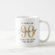 Funny 90th birthday mug featuring the humourous saying "it took me 90 years to look this good!" using a combination of black and a gold glitter font.