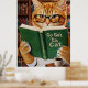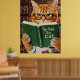Funny Adorable Reading Cat Art Coffee Tabby Cat Poster