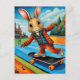 Funny Adorable Skateboarding Brown Rabbit Postcard