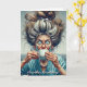Funny birthday card with a funny comic book lady with big shocked eyes, a messy bun and a cup of coffee. Aging humour. I hope your birthday cake doesn't set off the fire alarm!
