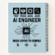 This funny AI Engineer design is perfect for anyone passionate about coding, machine learning, and artificial intelligence. Featuring a clean and modern tech-inspired style with a humourous coffee theme, it’s ideal for programmers, developers, data scientists, and tech geeks. A great gift idea for coffee lovers in tech who enjoy coding and working on AI projects. Suitable for birthdays, work environments, or casual everyday use.