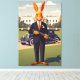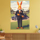 Funny American-themed poster in the style of the 1930s WPA national parks posters. These funny, surreal American posters feature an anthropomorphic rabbit on the White House lawn. 'The Don', an orange coloured anthropomorphic rabbit who has an uncanny, surreal resemblance to a certain US president, maybe?
