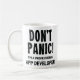 This delightful white mug features the phrase 'Don't Panic! I'm A Professional App Developer.' It's perfect for those in the tech field, whether at the office, during a team meeting, or as a lighthearted addition to a birthday celebration. A great work mug for any app developer looking to add a touch of humor to their coffee breaks.