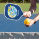 Funny astronaut in space and earth cartoon pickleball paddle