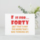 A hilarious birthday gag gift that says 'F is for...Forty! But that's not the word I was thinking of'.