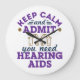 Funny audiology gift for audiologist. Design says, "Keep calm and admit you need hearing aids."