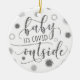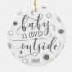 Commemorate the year of COVID-19 pandemic quarantine with a more lighthearted Christmas tree ornament with a funny silver glitter BABY ITS COVID OUTSIDE handwritten script typography design with corona viruses representing snowflakes on the front and duplicated on the back with the year 2020. Contact the designer via Zazzle Chat or makeitaboutyoustore@gmail.com if you'd like this design modified, on another product or would like coordinating items.