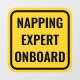 Napping expert onboard, Yellow and black baby on board funny modern alternative car window decal sticker by Stick it up.