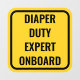 Diaper duty expert onboard, Yellow and black baby on board funny modern alternative car window sticker by Stick it up.
