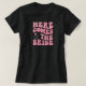 Cute and Funny Bachelorette T Shirt for the bride to be. Simple text that says Here comes the bride with pink lettering and a pink ring.