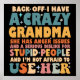 Funny grandma quote design: Back Off I Have A Crazy grandma She Has Anger Issues And A Serious Dislike For Stupid People And I Am Not Afraid To Use Her. Awesome tee with groovy saying, make your crazy grandma laugh, for kids, girls, boys, women, men, dad, aunt, mom, nephew, son, daughter, niece,.. Best family funny outfit for crazy grandma who loves funny jokes and quotes. Perfect sarcastic apparel for anyone who love his, her crazy grandma. for birthday, mother's day, father's day...