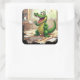 Funny Back to School Dinosaur Eating Homework Square Sticker