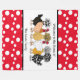 Adorable hand drawn chickens blanket with black and white polka dot background.