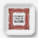 Funny bacon paper party plates for pork meat lover. Fun design for friends, family, chef, cook, dad, husband, coworker etc. Bacon strips with humourous quote. Add your own custom quote optionally. Great for BBQ, Birthday, breakfast and more.